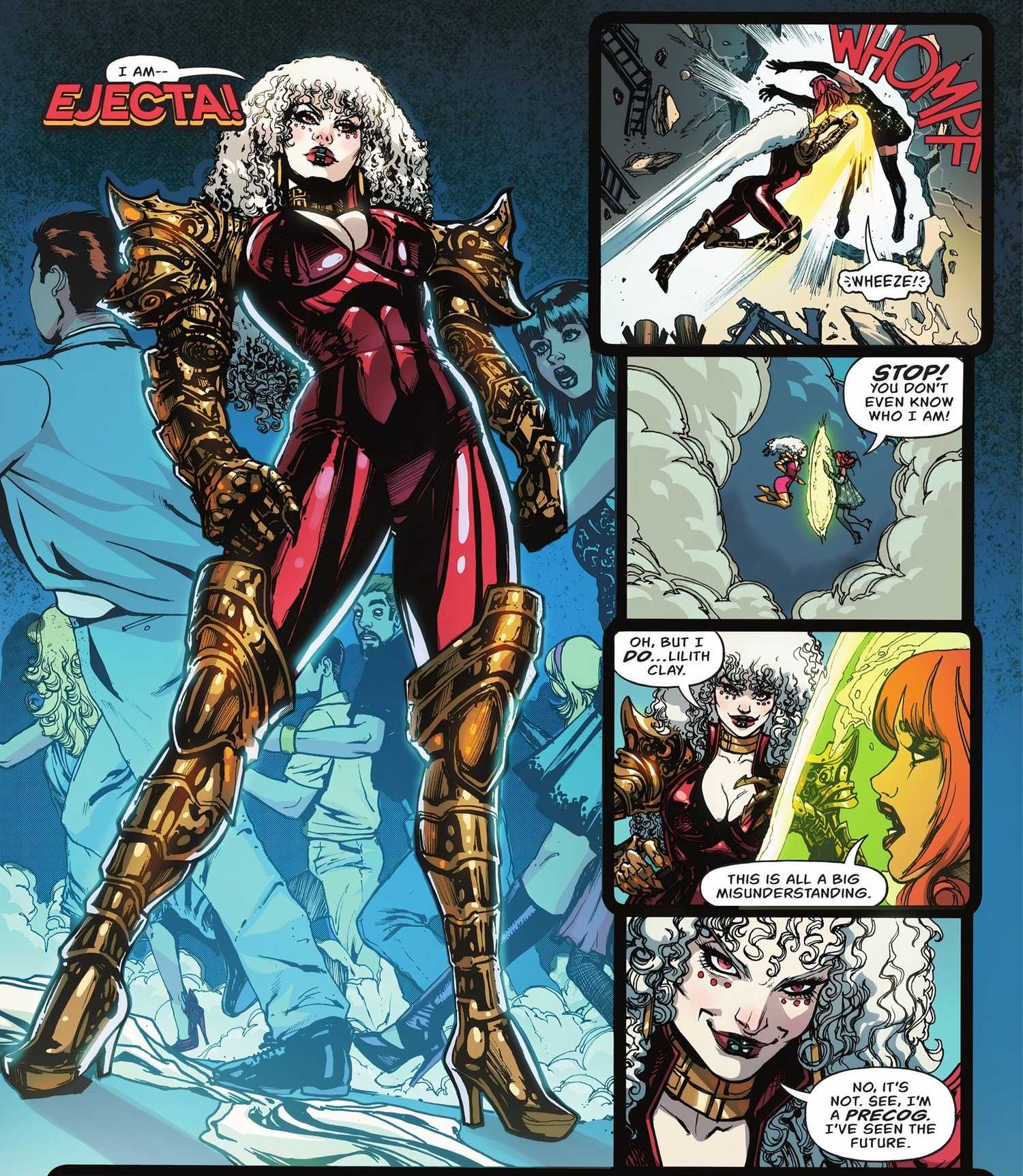 Su nombre es Ejecta y afirma tener el poder de ver el futuro. Lo que ha visto del futuro de Omen es tan malo que decidió matar a Omen antes de que ese futuro se haga realidad.en un giro oscuro de una conocida superpotencia.
