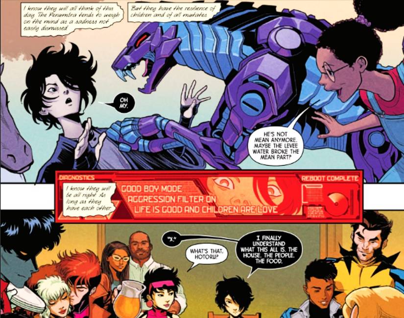 Asombrosa X-Men #16 incluso incluye un solo panel desde la perspectiva del sabueso, afirmando que ahora está en “Modo de buen chico“Y su”Filtro de agresión“Está activado. Si bien este es un gran momento de ligereza, también lleva a casa el punto de que este sigue siendo un robot asesino muy peligroso que los X-Men han tomado rápidamente como uno de los suyos.