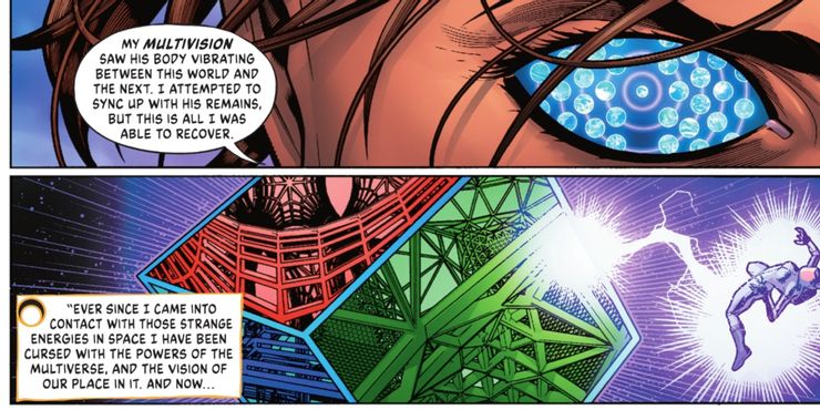 En Encarnado de la Liga de la Justicia # 1, por Joshua Williamson, Dennis Culver, Brandon Peterson, Andrei Bressan, Tom Derenick, Hi-Fi y Tom Napolitano, el superequipo termina en Tierra-8, hogar del pastiche de DC de los héroes de Marvel Comics. A los lectores se les presenta rápidamente al Doctor Multiverse, quien llega con un pedazo de Machinehead y advierte a los Retaliators que el Multiverso está enfermo y que algo se avecina para su universo de origen, que termina siendo un villano parecido a Thanos. El héroe explica que encontró una pieza de Machinehead usando su Multivisión, lo que le permite viajar a través del Multiverso. La Doctora Multiverso explica que obtuvo sus poderes de omisión después de entrar en contacto con energías espaciales extrañas durante una misión con la Agencia Espacial Canadiense.