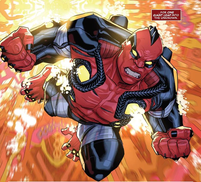 Romero debutó con su salto hiperespacial poco después de la muerte de Ego, después de derrotar a Terrax the Planet Hunter. La habilidad es impulsada por su ira, que está en línea con todas las variantes de Red Hulk. y su poder, pero la ira es simplemente un interruptor de encendido. Transportar al equipo completo de Nova a través del espacio deja claro que Hulk no está simplemente saltando a través de las estrellas. La habilidad ha crecido, lo que le permite llevar a otros en el viaje. No es sólo un salto impresionante sino una demostración de poder a nivel cósmico que le permite llevar a otros a través del universo. Eso es sólo el comienzo del nuevo Red Hulk.
