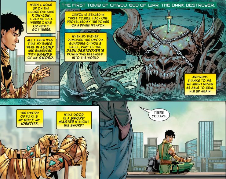 En esta nueva serie de Marvel Comics, Puño de Hierro #1 de la escritora Alyssa Wong y el artista Michael Yg presenta a Danny Rand encontrándose con su reemplazo por primera vez. Mientras que el Arma Viviente original de Marvel, naturalmente, quiere saber más sobre este nuevo Iron Fist, Lin Lie fantasmas Danny más de una vez antes de saltar a través de un portal de regreso a K’un-Lun, la Ciudad Celestial que ha entrenado a generaciones de Iron Fists pasados mientras también protege el gran dragón Shou-Lao el Eterno.