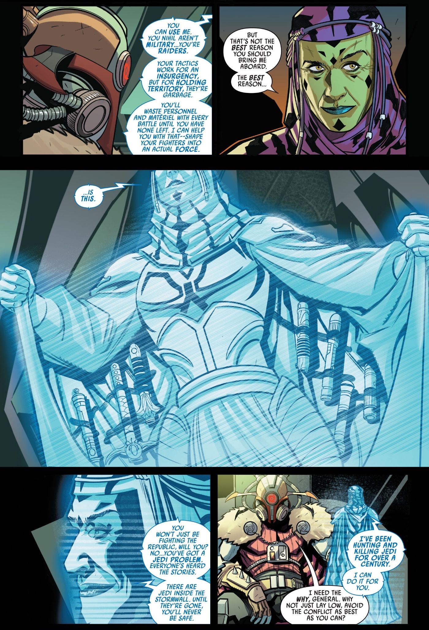 Al optar por abandonar el retiro, el general Viess espera forjar una alianza con el líder de Nihil, Marchion Ro, en el nuevo Sombras de la luz de las estrellas #4 de Charles Soule, David Messina y Jethro Morales. Con ese fin, Viess traiciona y entrega un mundo que había estado resistiendo la toma galáctica de Nihil dentro de la “Zona de Oclusión”, una región entera del espacio de la República que los merodeadores han amurallado usando su tecnología Stormwall. Al reconocer el poder y el potencial de Ro para ganar, Viess desea convertir a sus merodeadores en una verdadera fuerza militar. Como tal, Las “credenciales” de Viess pondrían bastante celoso al general Grevious de la trilogía precuela.