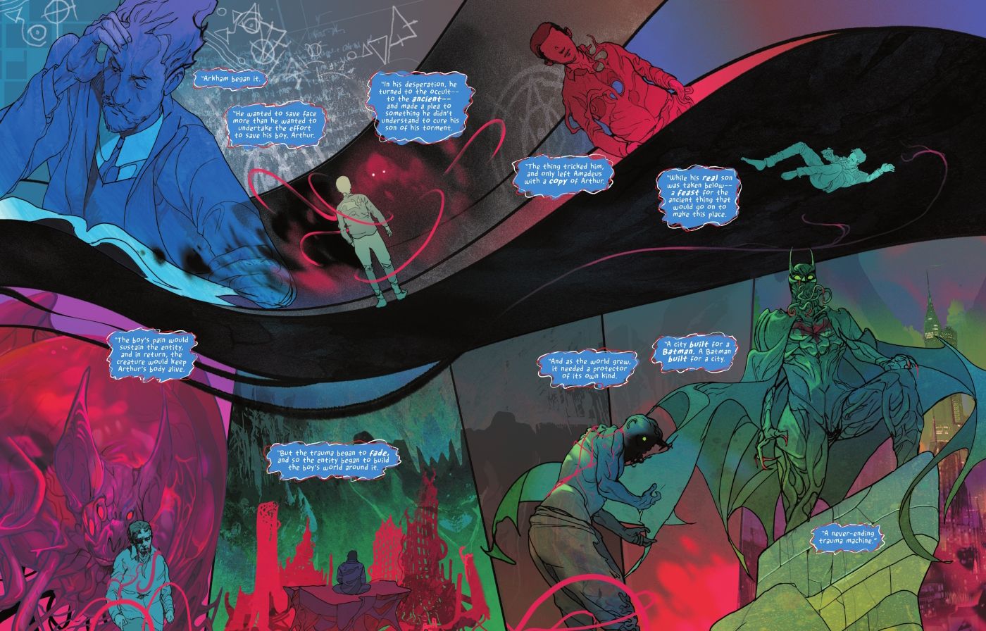En Batman: ciudad de la locura #3 de Christian Ward y Hassan Otsmane-Elhaou, Batman tiene que resolver el misterio de una versión C’thulu de sí mismo llamada Batman Below. Si bien Batman remonta los orígenes de Batman Below al hijo de Amadeus Arkham, la verdadera revelación también explica los orígenes del Joker.