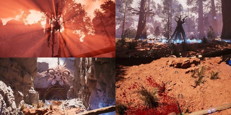 El eje invisible se describe como un juego de terror de caza de mundo abierto en su página de Steam, y por el aspecto de las capturas de pantalla reveladas, eso ciertamente parece exacto. Los monstruos parecen pesadillas macabras y son muy viciosos según Nate Purkeypile. El paisaje es inquietante, con altares extraños, calaveras decorativas y estructuras extrañas esparcidas por todas partes. También existe la posibilidad de jumpscares repentinos además del ambiente de suspenso, especialmente en áreas boscosas con mucha maleza para que los monstruos se escondan.