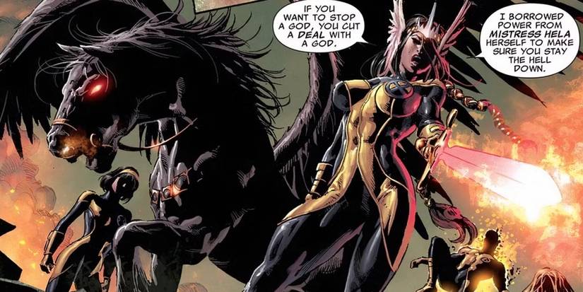 Como Valkyrie, Moonstar se convirtió en el ángel oscuro de Hela