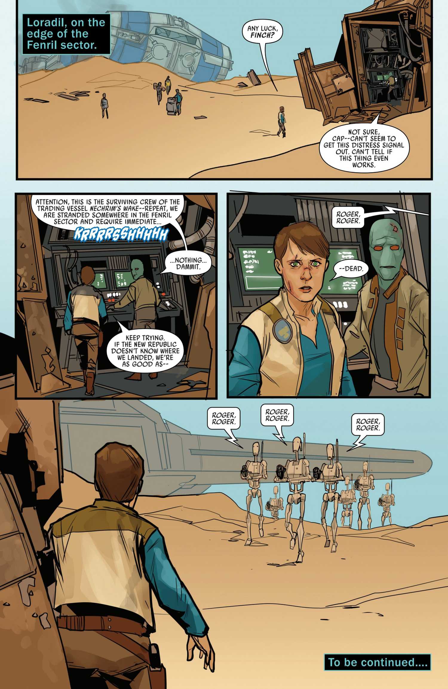 Después de todo, los droides de batalla en la era de la Nueva República hicieron recientemente su debut en Star Wars #3. Cuando los piratas atacaron un recipiente comercial de la República y derribado en el planeta Loradil dentro del sector de Fenril, se mostró a las fuerzas de la nueva República varadas frente a una legión de droides de batalla de la era de las Guerras Clon en su dirección.