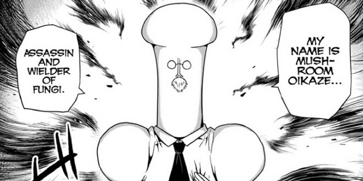 En el capítulo 8, Shugomaru y Sanagi deben luchar contra el asesino Mushroom Oikaze, que lucha utilizando hongos. Su tiempo dedicado a investigar hongos transformó su apariencia en la de un hongo gigante. O al menos, esa es una interpretación de su apariencia. Como señala el inmaduro Shugomaru, su cabeza también parece un “gran viejo ding-dong.” El manga realmente toma esta broma y continúa con ella. Mushroom Oikaze a menudo se mueve en posiciones que hacen que este parecido inapropiado sea muy, muy claro y, a medida que avanza el capítulo, revela un ataque grosero en consonancia con este tema. Es algo es sorprendente lo explícito que se dibuja el personaje, y Viz aparentemente piensa que esta broma es demasiado para algunos lectores.