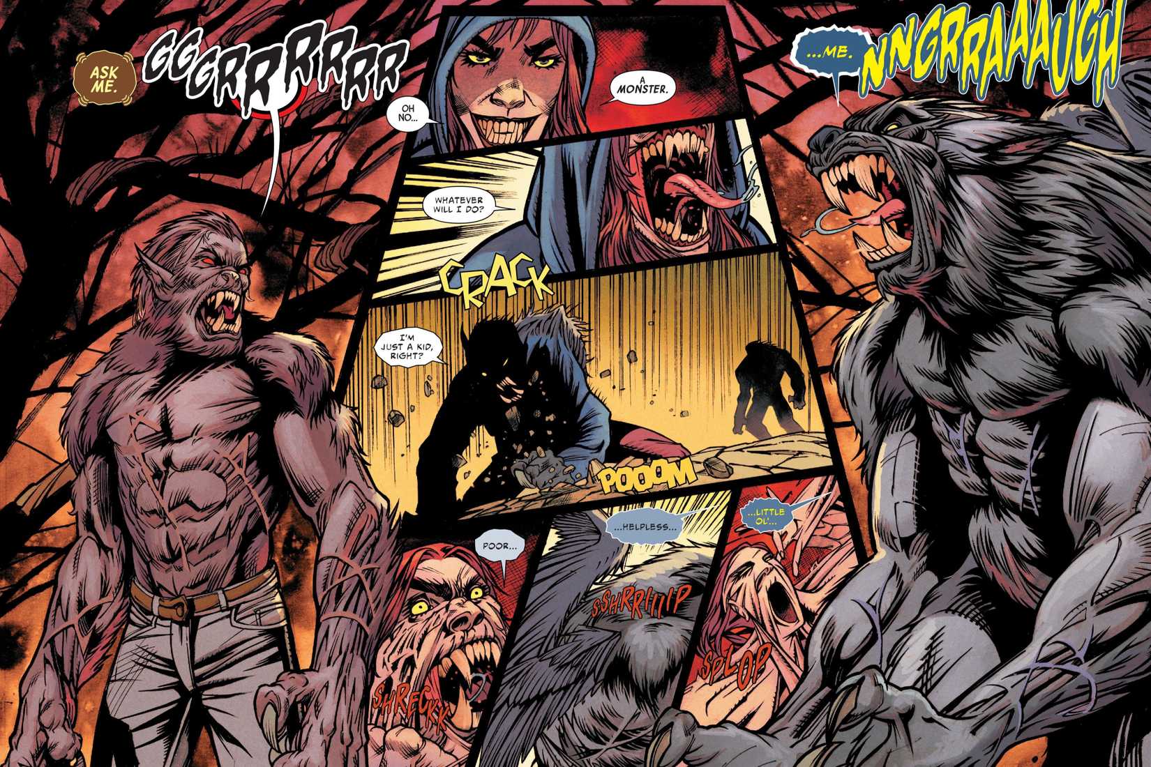 Increíble Hulk #20 – escrito por Phillip Kennedy Johnson, con arte de Danny Earls – es el primer vistazo a la joven compañera de Hulk, Charlie Tidwell, después del desarrollo de sus extraños poderes licantrópicos. A diferencia de Banner, el cuerpo humano natural de Charlie posee una increíble cantidad de fuerza y destreza, como si fuera un disfraz que esconde al lobo en su interior.