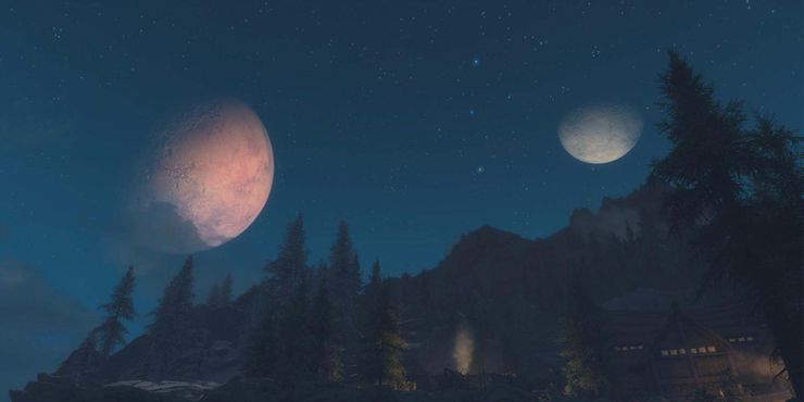 En una nueva modalidad, de Skyrim Las lunas han sido reemplazadas por la luna de Pandora, Elpis, con la Estación Helios flotando siniestramente frente a ella. Este mod fue creado por ENDERIAN ANIMATION Studios y publicado por el usuario de Nexus JackLemon123. El mod reemplaza las dos lunas que normalmente se encuentran en de Skyrim cielo nocturno con Elpis y la estación Helios, como si el jugador ya no estuviera en Skyrim sino en el planeta Pandora. Esta no es la primera vez que los modders intentan fusionarse Skyrim con más Tierras fronterizas-como elementos, por ejemplo, hay modificaciones de textura para dar Skyrim el icónico look cel-shaded de Tierras fronterizas. Esta mezcla de ciencia ficción y fantasía en Skyrim hace que la experiencia del jugador sea más misteriosa y peculiar.