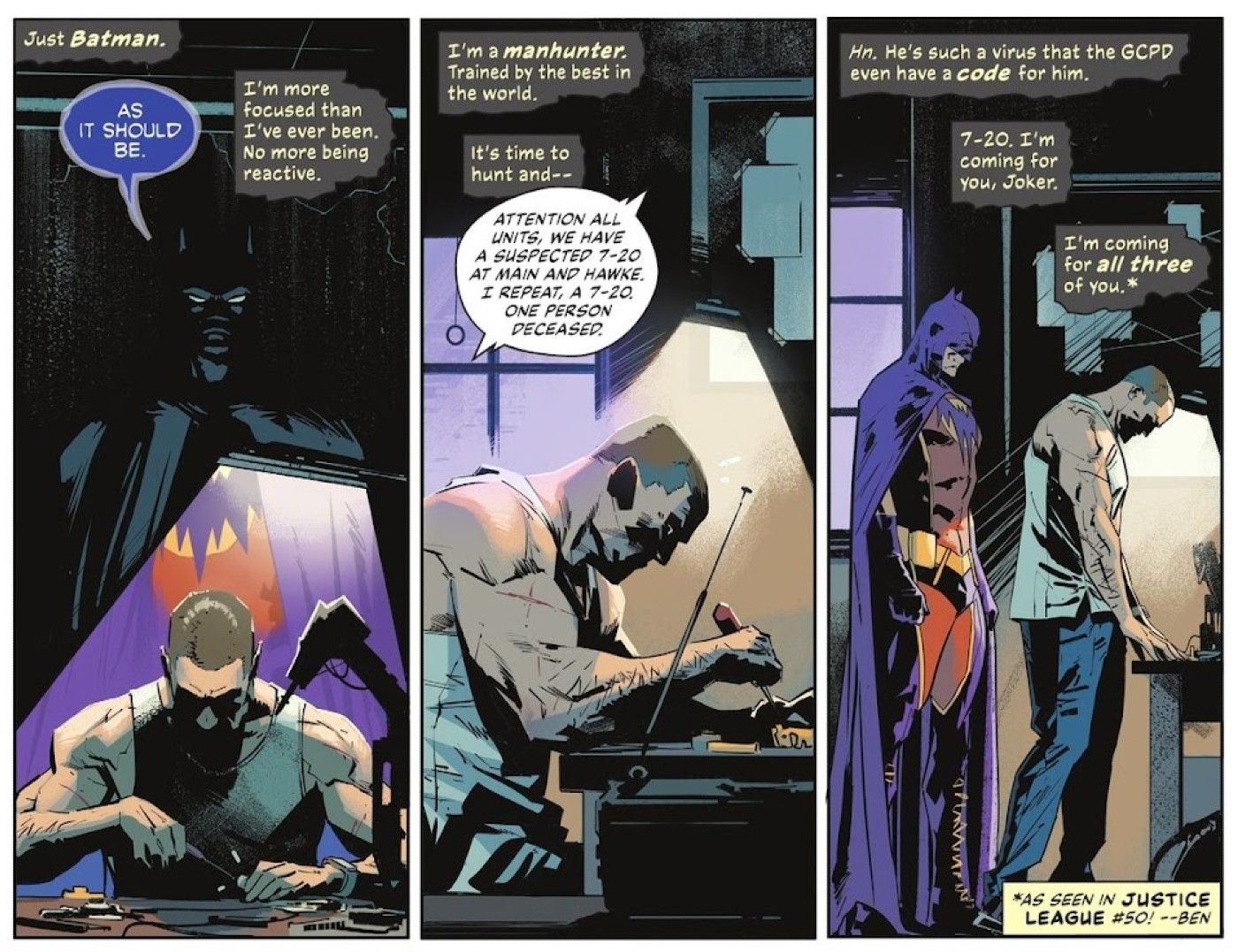 En Batman #139 – por Chip Zdarsky, Jorge Jiménez, Tomeu Morey y Clayton Cowles – las secuelas de La guerra de Gotham se desarrolla, hundiendo a Batman en una situación desgarradora. Aislado de sus aliados y agobiado por la lucha por contener a Zur-En-Arrh, el volátil personaje alternativo de Bruce, el Caballero de la Noche escucha un código policial familiar: Joker está de regreso en la ciudad.