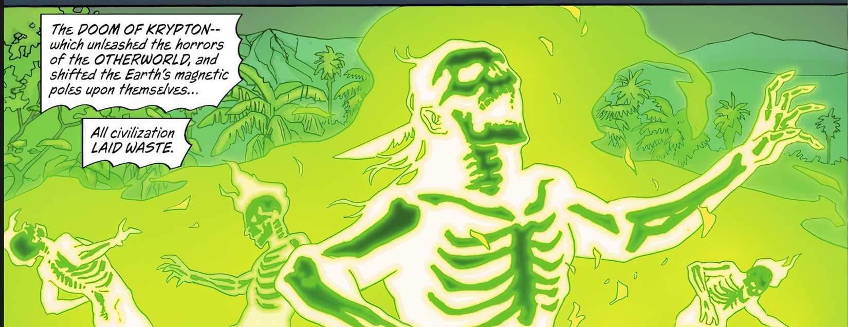 Notas extrañas de que Diana revela que la Perdición de Kriptón desató horrores de la “Otro mundo” arrasando toda la civilización, incluido el hogar perdido de las Amazonas, Themyscira. Cuando se perdió Themyscira, las Amazonas sobrevivientes huyeron al reino ubicado en el núcleo de la Tierra. Sin embargo, parece que incluso antes de que los kriptonianos provocaran el fin de la civilización, ya había tensión entre ellos y las Amazonas. Diana menciona que la Las amazonas siempre se habían abstenido de utilizar el “ciencia inefable” de los kriptonianoslo que sugiere una discordia de larga data entre los dos pueblos.