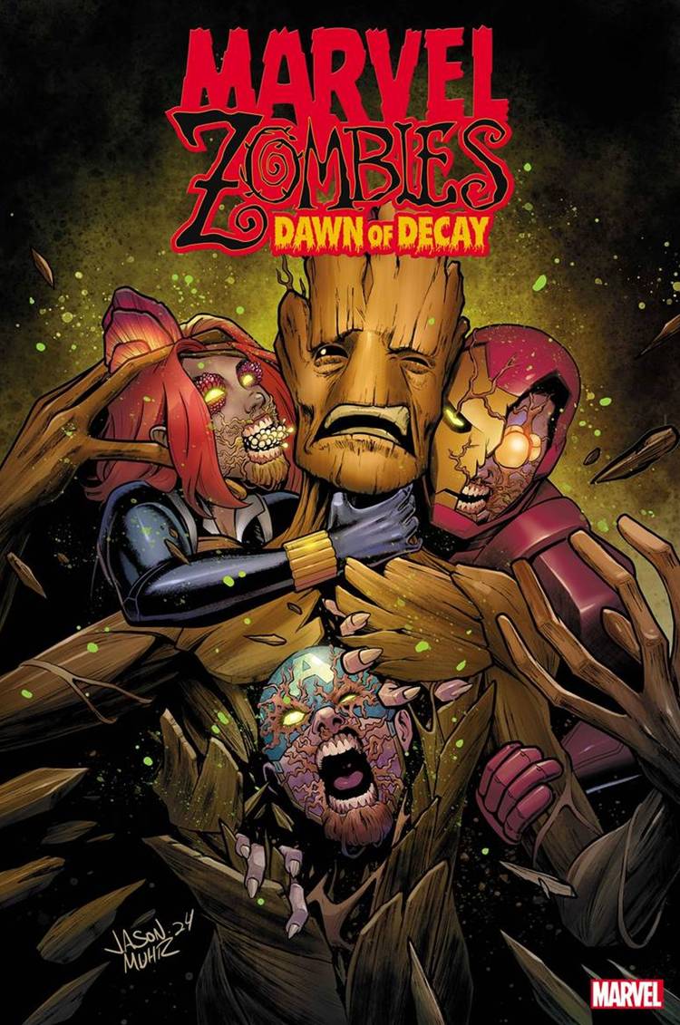 La última de muchas miniseries de Marvel Zombies coloca a la heroica criatura-árbol de los Guardianes de la Galaxia en el centro de un pandemonio basado en plantas. Un desafortunado estornudo de Groot en la cara del Capitán América. pone en marcha la próxima infección viral en la vista previa de Marvel Zombies: El amanecer de la decadencia #1 por Tom Krajewski y Jason Muhr.