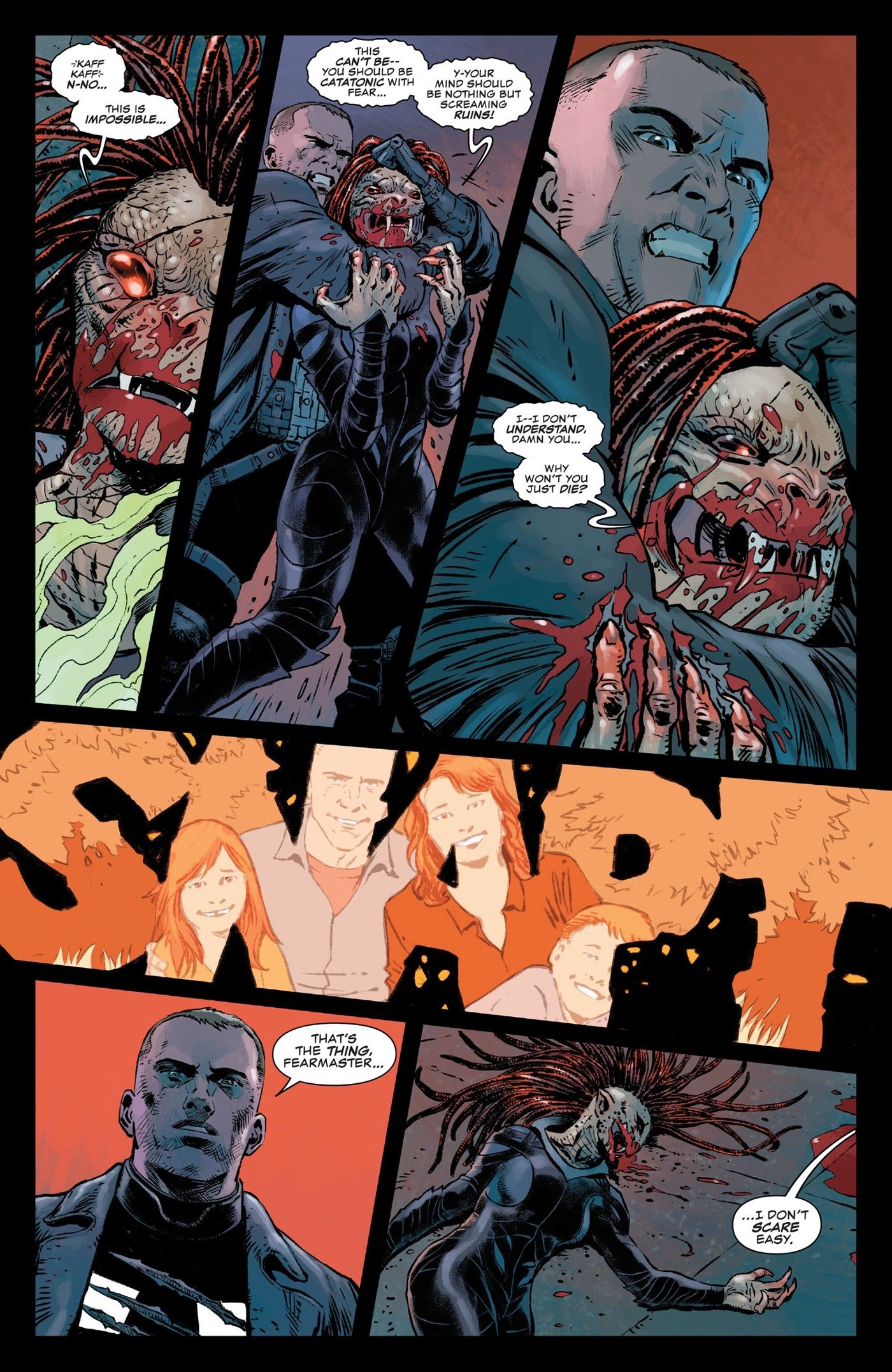 - El asesinato de FearMaster por parte de Joe Garrison significa su transformación completa en Punisher, lo que lo lleva por un camino oscuro e interminable de venganza.