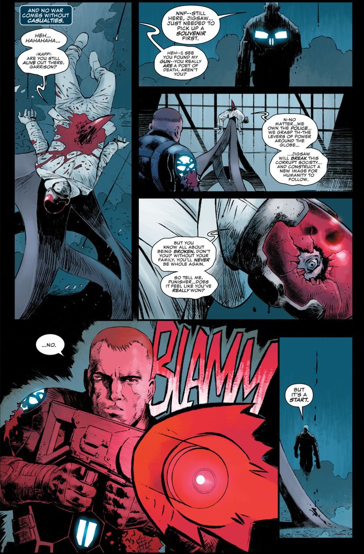 - Joe Garrison finalmente acepta su papel de Punisher en el número 4, tomando una decisión oscura e irrevocable.