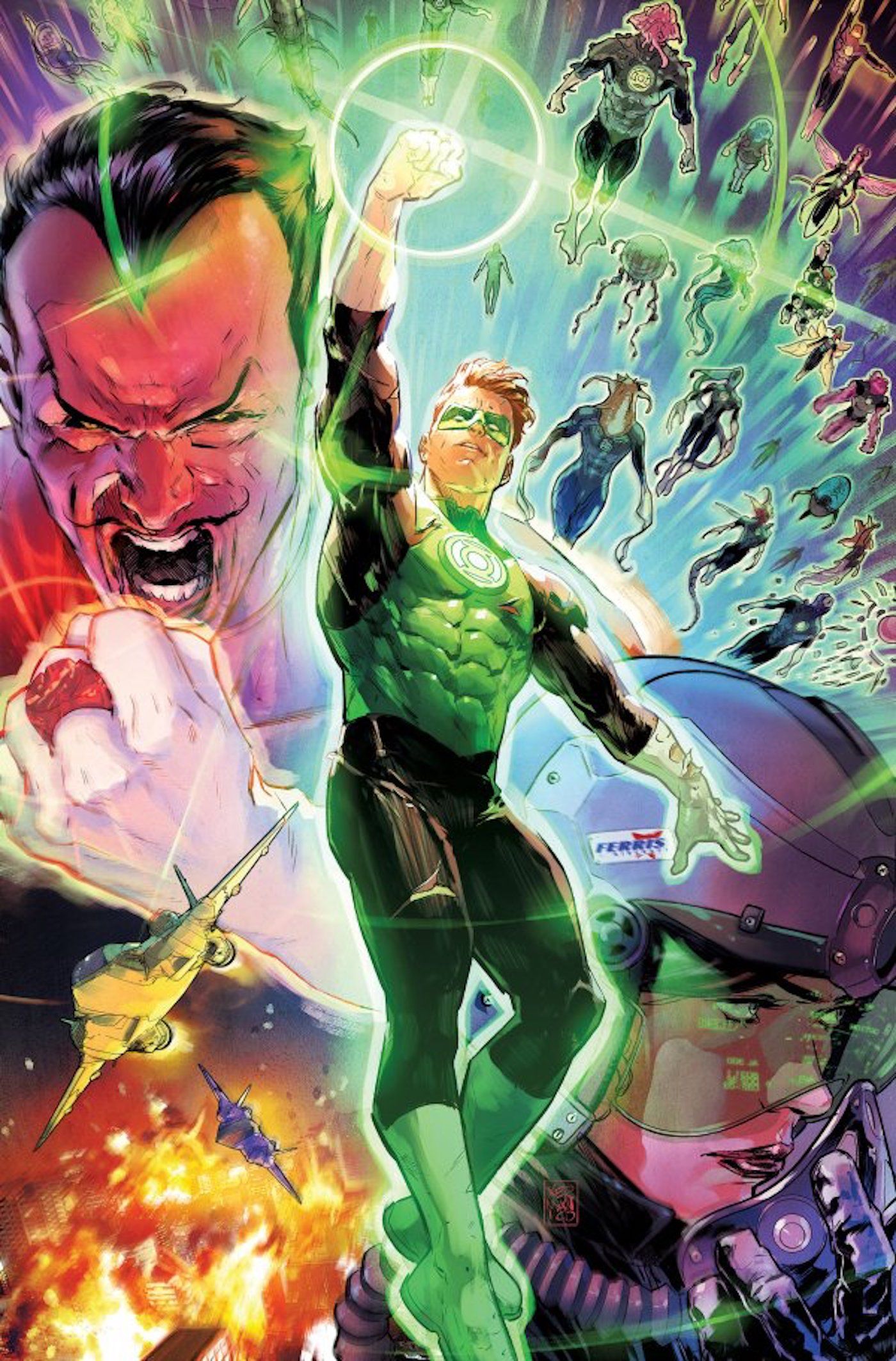 HAL JORDAN VS. SINESTRO: ¡AHORA MÁS PELIGROSO QUE NUNCA! ¡Todo se reduce a esto! Hal Jordan, el Linterna Verde de la Tierra, finalmente se enfrenta a su antiguo mentor, Sinestro, cuyo poder para infundir miedo ha sido reemplazado por una ira elemental que podría arrasar el planeta que una vez juró proteger.
