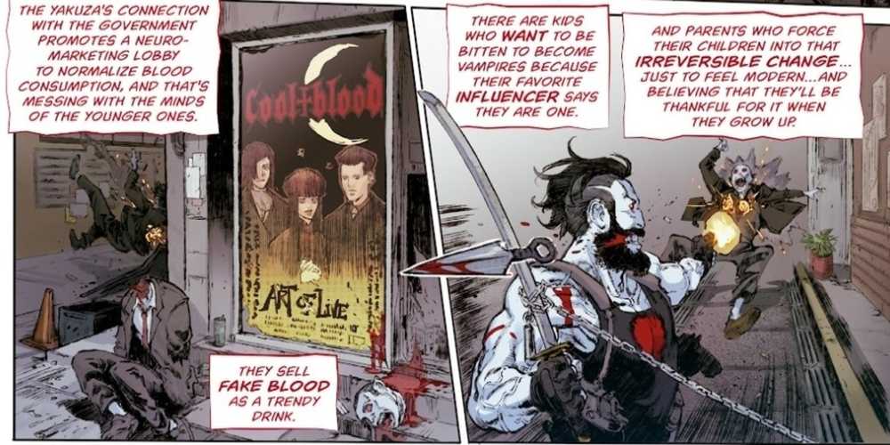 La controvertida escena en Inyectado de sangre #1 continúa denuncia “padres que obligan a sus hijos a sentirse modernos … y creen que estarán agradecidos por ello“Convertirse en vampiros, evocando aún más los argumentos anti-trans de una manera que no es de sabor, por decir lo menos, pero además, es activamente dañino dada la forma en que podría perpetuar malentendidos sobre las personas transgénero.