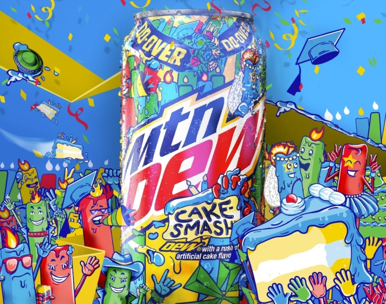 Cake-Smash estaba previsto originalmente para ser lanzado el año pasado en apoyo del 80 aniversario de MTN DEW, pero los retrasos relacionados con la pandemia obligan a retrasar el debut de la bebida.