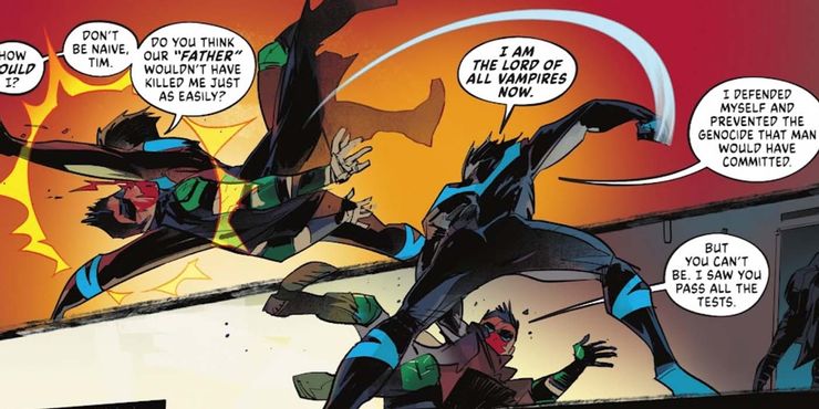 En un Universo DC donde los vampiros están convirtiendo a los héroes en monstruos chupadores de sangre, se acaba de revelar que el Señor de los Vampiros es Ala noche. En un giro impactante en DC contra vampiros # 6 de DC Comics, resulta que Dick Grayson es el miembro de Bat-Family que en secreto era un vampiro, ya que el antiguo héroe se dedica a matar como nunca antes.