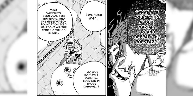 Hol Horse es sorprendentemente empático con esto, y está claro que todos los minion que sobrevivieron a la desaparición de Dio han estado lidiando con un trauma muy intenso, incluso diez años después. El caballo Hol a menudo comadreja de Cruzados de polvo de estrellas ha madurado, y lamenta profundamente el hecho de que no pudo seguir adelante con la traición de Dio en ese entonces. Esto parece ser una referencia a la conocida idea en el Jojo fandom que Araki una vez consideró que Hol Horse se uniera a los Joestars, y es un uso efectivo de la continuidad. Para Hol Horse y Mariah, hay algo de culpa por haber aceptado voluntariamente y es una pena que, hasta cierto punto, realmente extrañen esos días. El glamour vampírico de Dio era mucho más poderoso de lo que parecía, aparentemente, y hace que la idea de Viento doradoEl nacimiento de Giorno parece mucho más plausible. Y a pesar de cuánto tiempo ha pasado, ninguno de los dos puede deshacerse de la sensación de que Dio nunca se puede ir realmente, y que el Dio de sus sueños puede ser más que un simple recuerdo.