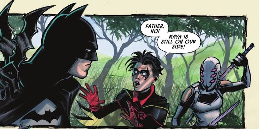 Maya está al lado de Damian Wayne en Batman y Robin #11 de Williamson y Juan Ferreyra, donde ayuda a Batman y Robin a rastrear a Bane en Dinosaur Island. Aunque Batman, por supuesto, desconfía de su presencia (y de su historia con Henri Ducard), Damian confía completamente en ella. Damian está construyendo silenciosamente una red de amigos independientemente de su relación con Batman. refleja directamente el camino de Dick Grayson que finalmente lo vio deshacerse de su piel de Robin para convertirse en Nightwing.
