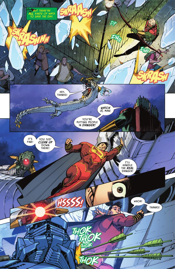 Por supuesto, Kenan ha sido notablemente arrogante en representaciones anteriores, por lo que este encuentro no es demasiado sorprendente. Aunque tiene todas las capacidades de Kal-El, su personalidad está afectando su heroicidad. Tal como Clark Kent tiene Batman para equilibrarlo, Super-Man tiene a Connor Hawke, quien aprendió a ser un héroe sin ningún poder especial de Green Arrow. Esta distinción en su viaje para luchar contra el crimen es importante porque, a diferencia de Kenan, no tenía el lujo de tener superpoderes o un nombre como “Superman”. Sin embargo, Connor es ahora el hijo del actual líder de la Liga de la Justicia, lo que posiblemente eleva su propio estatus como héroe en el Universo DC.