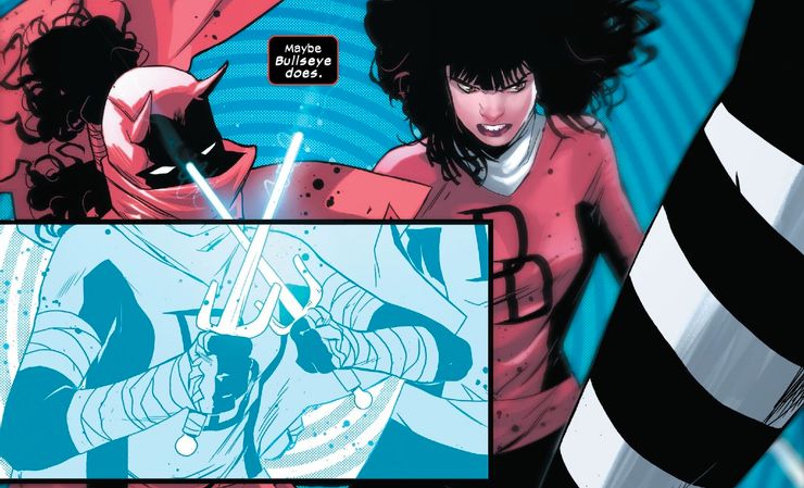 Afortunadamente, esa actualización ha llegado en forma de un par de nuevas y poderosas armas diseñadas nada menos que por el Invincible Iron Man. Daredevil # 34 de Chip Zdarksy y Stefano Landini les da a los fanáticos una primera muestra de lo que pueden hacer estas armas. Y si son tan letales como Elektra, Bullseye se encontrará con un mundo de dolor.
