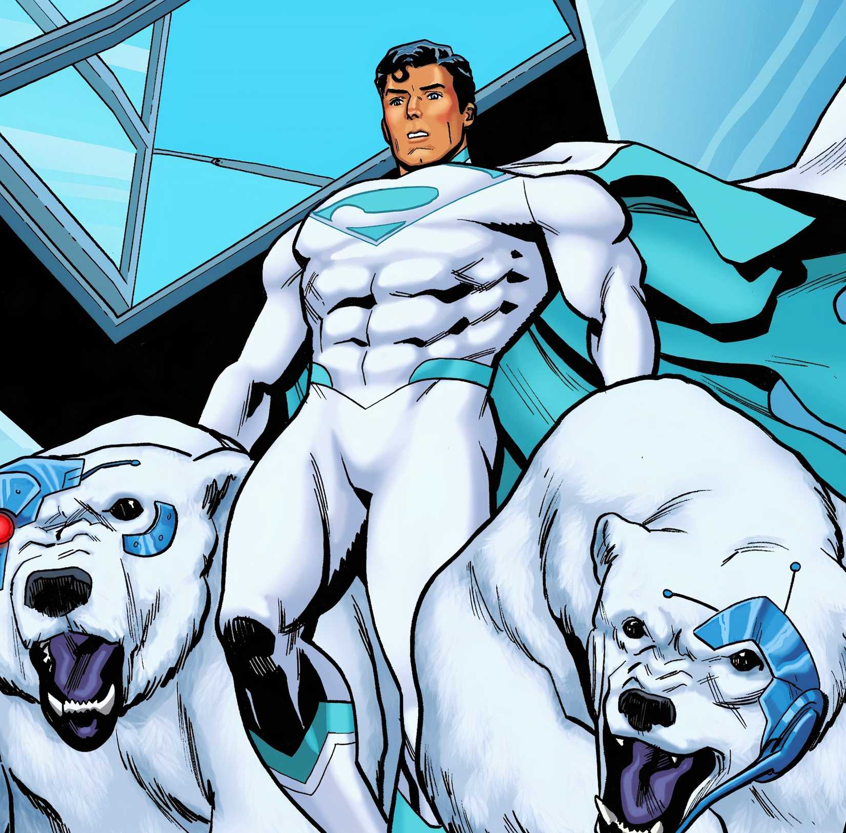 Justo cuando Clark llega a la estación, es atacado por osos polares con cibernéticos. Afortunadamente, tiene tiempo para escapar y convertirse en su alter ego. Sin embargo, en lugar de su disfraz azul y rojo habitual, Superman lo ha cambiado por uno blanco con acentos azules.
