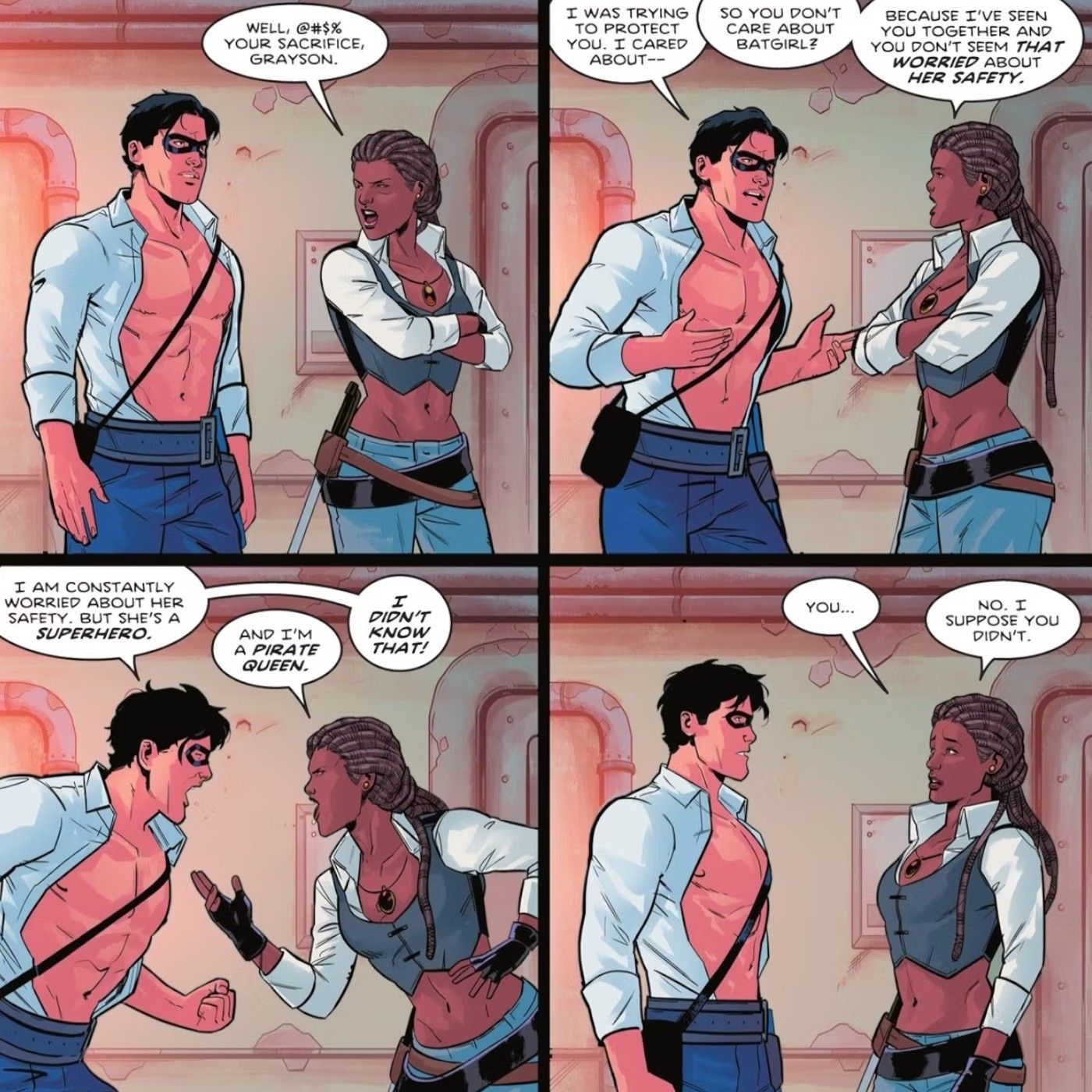 Mientras Nightwing emprende una aventura pirata con el amor de su vida pasada, Bea Bennett, el potencial triángulo amoroso entre él, Barbara Gordon y Bea acaba de terminar de la manera más oscura posible en Ala noche #108 de Tom Taylor y Stephen Byrne. Mientras Bea Bennett lucha contra su hermano por el título de Capitán Blüd, aparentemente termina siendo apuñalada fatalmente y arrojada al océano.