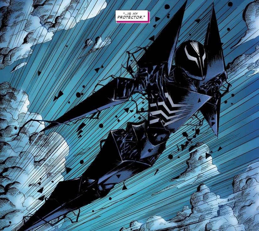 Este nuevo y espectacular diseño acaba de debutar en el Venomverso Renacido #3 cuento “Más allá del vacío” de Steve Foxe y Kei Zama. Esta historia tiene lugar en la Tierra-71490, el hogar del héroe de Spider-Verse Web-Weaver. Recientemente ha habido una serie de asesinatos brutales contra un antiguo equipo de investigación, y Web-Weaver está decidido a llegar al fondo del asunto. Si bien Web-Weaver es consciente de que el asesino es un simbionte, nunca podría estar preparado para la nueva apariencia que luce Venom de este universo.