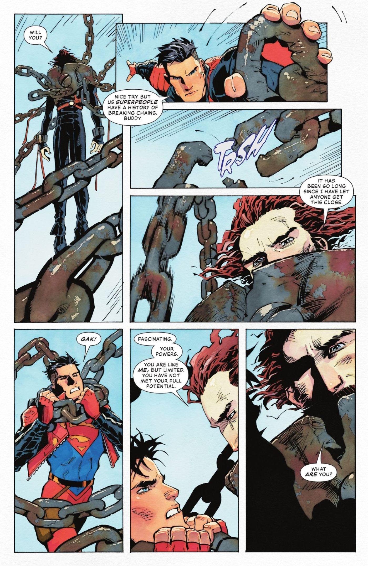 SuperhombreEl todopoderoso nuevo enemigo puede tener un vínculo secreto con Conner Kent, el Super chico desde la década de 1990. Superman es uno de los seres más poderosos de los cómics, razón por la cual mucha gente ha intentado capturar o recrear su poder. Uno de los mayores ejemplos de esto es cuando Lex Luthor creó un clon de Superman, usando el ADN de Superman y el suyo propio para completar los espacios en blanco, lo que resultó en Superboy. Ahora, otro de los viejos experimentos de Lex, Chained, afirma que él y Superboy podrían estar más relacionados de lo que la gente piensa.