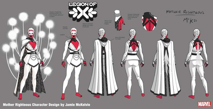 Parece que Righteous será una entidad aparentemente neutral con su propia agenda secreta para los mutantes, y comenzará su relación con los Legión de X equipo manipulando la legión a menudo inestable. Mother Righteous hará de Legion un “trato profano,” uno que está específicamente destinado a jugar con las inseguridades de David Haller acerca de vivir a la sombra de su infame padre Charles Xavier.