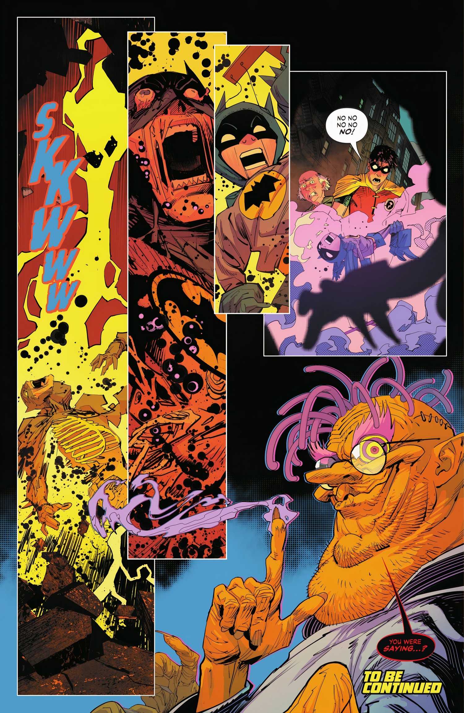 Doom-Mite golpea a Robin con una poderosa explosión, pero Jimmy regresa con los supervivientes de la Liga Just-Us. Los diablillos luchan valientemente contra su enemigo de la sexta dimensión. Desafortunadamente, Doom-Mite es demasiado poderoso y los elimina a todos con facilidad. Afortunadamente, Batman, Superman y Bat-Mite llegan después de escapar de la Primera Dimensión. Los mejores del mundo, junto con Robin y los diablillos, se preparan para hacer su última batalla contra Doom-Mite. Pero antes de que Bruce pueda revelar su plan para derrotar a su oponente, Doom-Mite lo bombardea con energía y convierte a Batman en una marioneta.