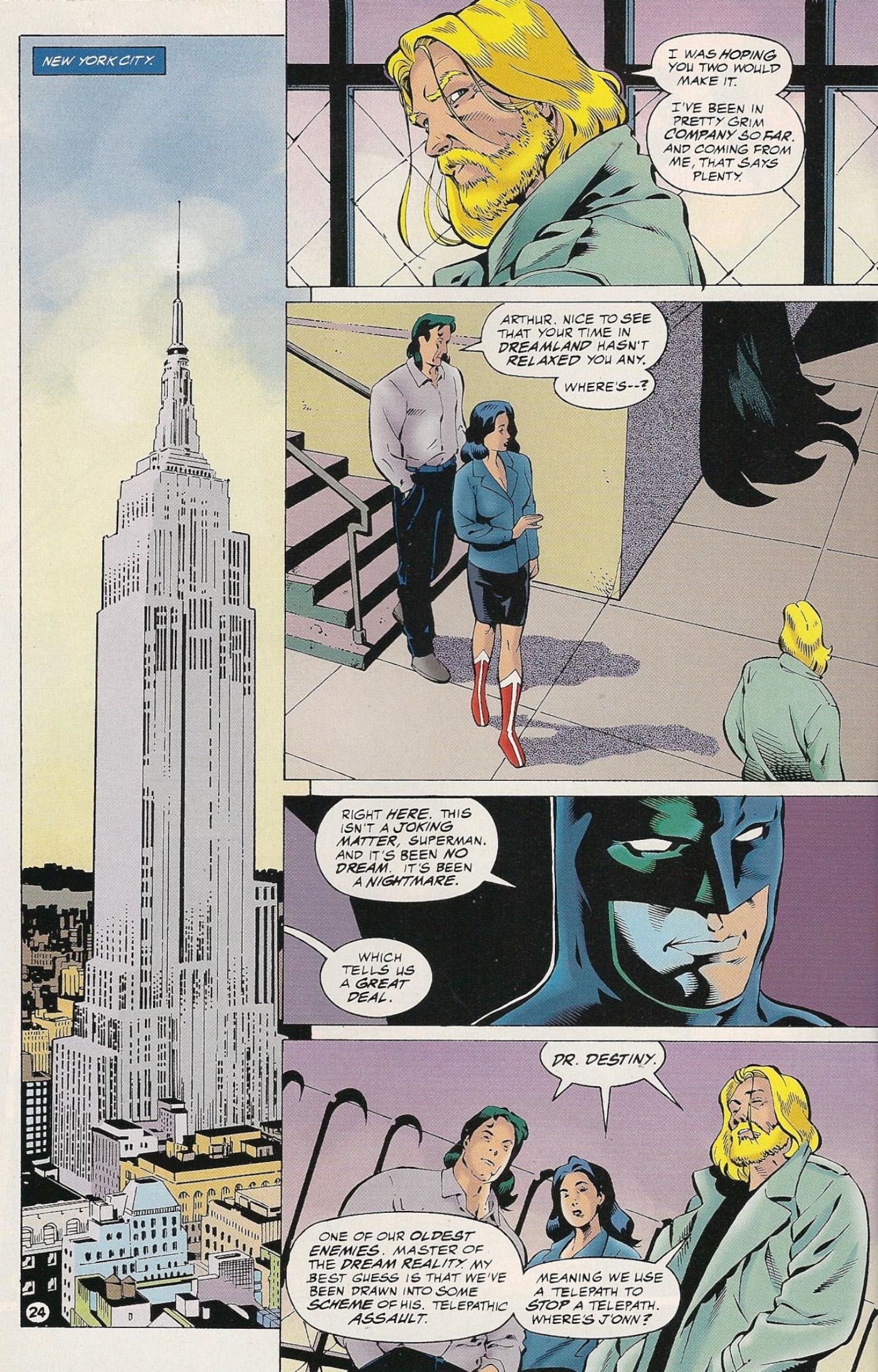 Liga de la Justicia: Una pesadilla de verano El número 3, de Fabian Nicieza, Jeff Johnson, Darrick Robertson, Jon Holdredge, Hannibal Rodriguez, Ken Lopez y John Kalisz, contiene un excelente ejemplo del impresionante dominio del sigilo de Batman. En esta historia, todos en la Tierra obtuvieron superpoderes, mientras que héroes icónicos como Superman y Linterna Verde parecían estar completamente sin poder.