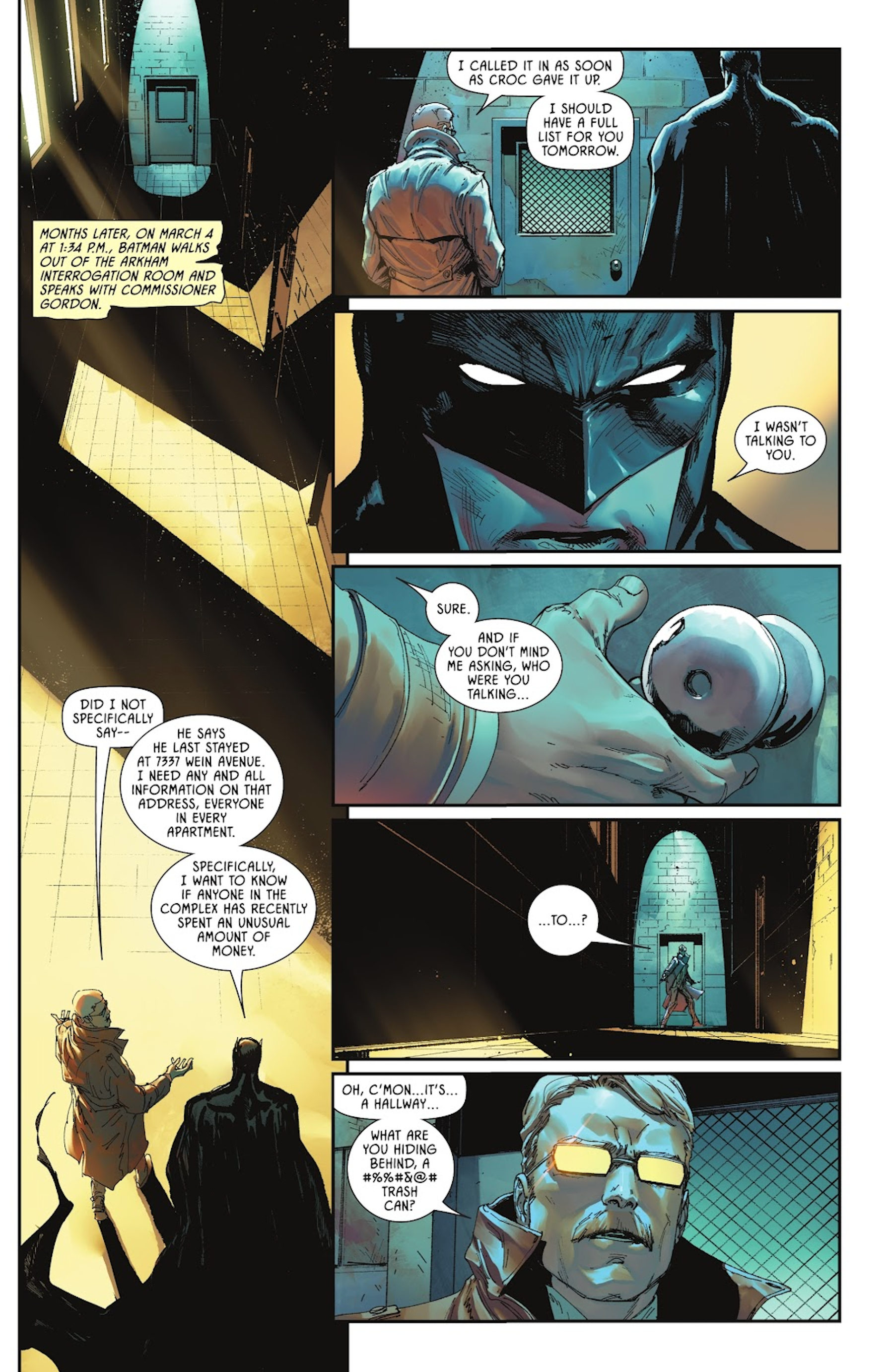 “/> Finalmente, la Liga de la Justicia localizó la fuente de este extraño giro: los personajes Know Man y Dr. Destiny. Con el Dr. Destiny encadenado en una base militar, Batman decidió infiltrarse solo y, a pesar de que Superman y Martian Manhunter sabían que estaba haciendo esto, fueron completamente incapaces de seguirle la pista.