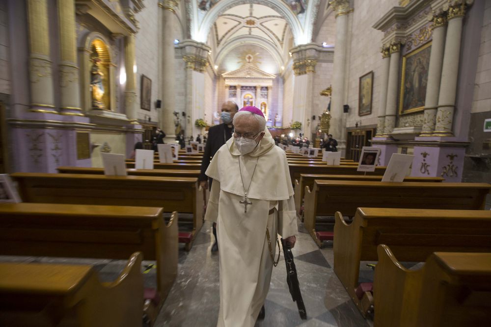 El acto, una liturgia que combina tradiciones seculares donde el obispo saliente y el entrante intercambian el báculo, la mitra y el escudo apostólico, donde se escucha su confesión de fe y la carta escrita en latín del Papa, estaba condicionado por la pandemia y las restricciones sanitarias. Oficialmente solo 90 personas podían estar presentes, pero Raúl Vera llenó la catedral y metió a otras 200 personas más. Se trataban de los desaparecidos, mujeres víctimas de feminicidios sin resolver o ecologistas asesinados en los últimos años y cuyas fotografías desplegó a lo largo del templo colocando sus rostros sobre los bancos desde el altar hasta la puerta principal.