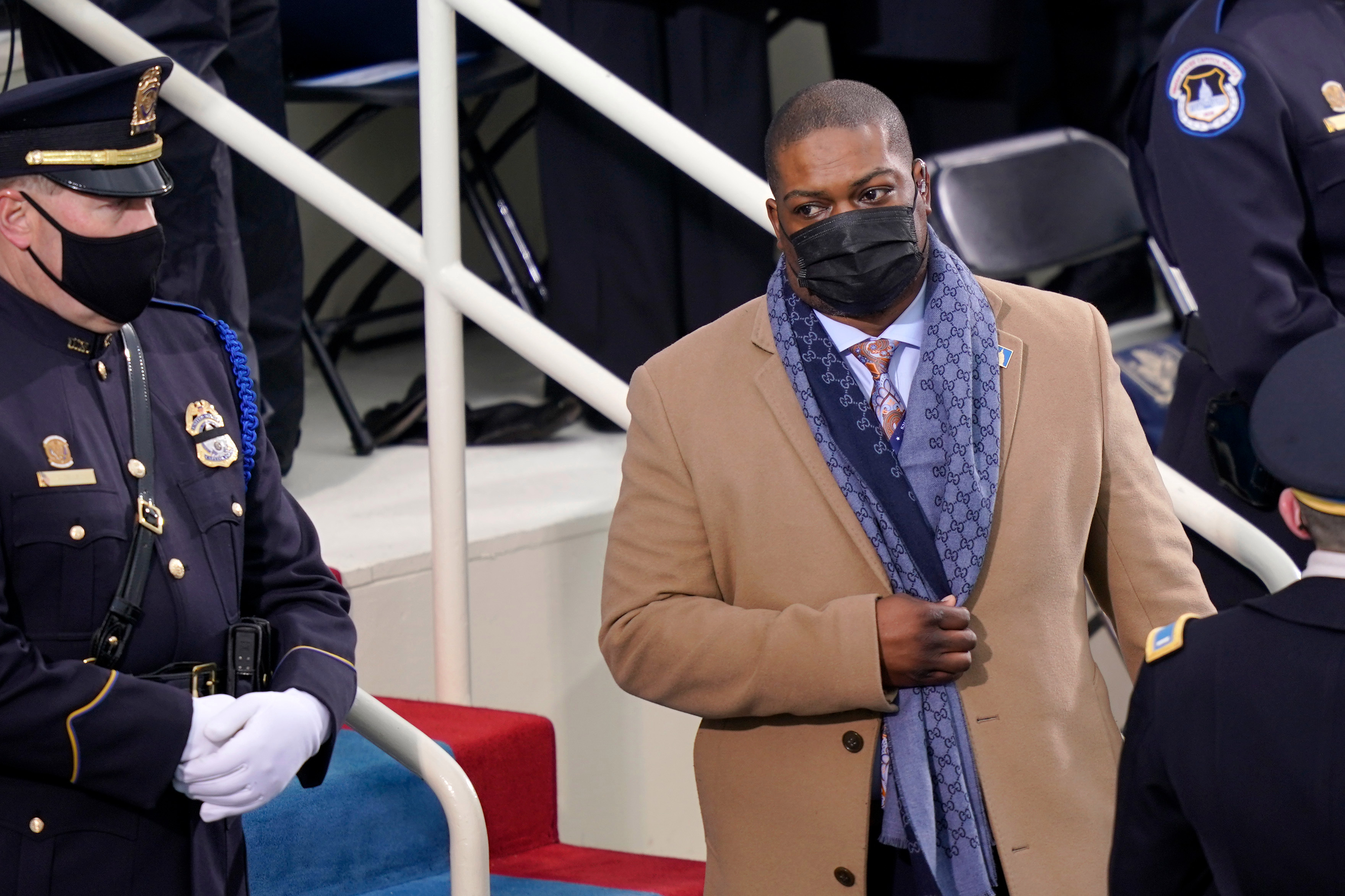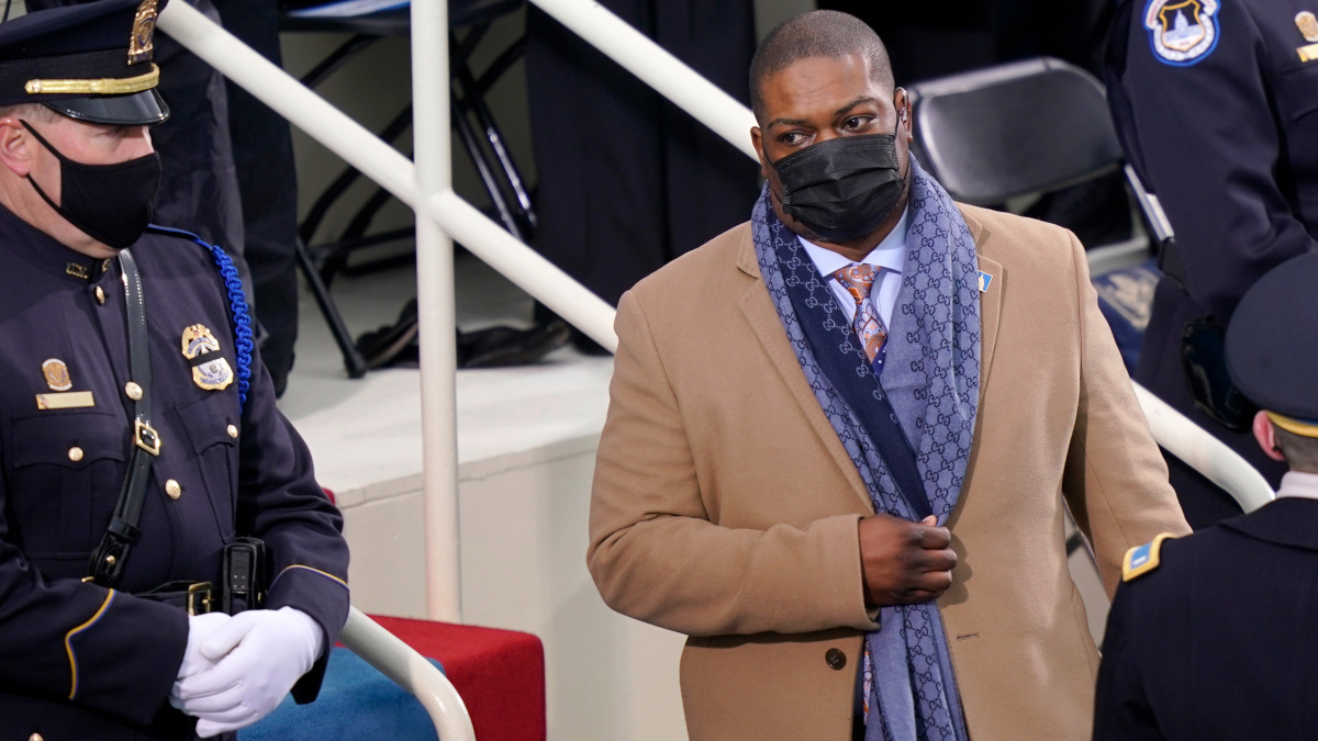 El oficial Eugene Goodman, uno de los héroes de la Policía del Capitolio que se enfrentaron hace dos semanas a la turba que irrumpió en la sede del Congreso de EEUU, fue el encargado este miércoles de escoltar a la vicepresidenta, Kamala Harris, durante la ceremonia de toma de posesión.