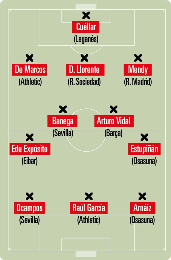 Los triunfos de Athletic, Sevilla y Osasuna, presentes por partida doble en el ‘once’ ideal de esta jornada 36 de LaLiga Santander que ayer finalizó.