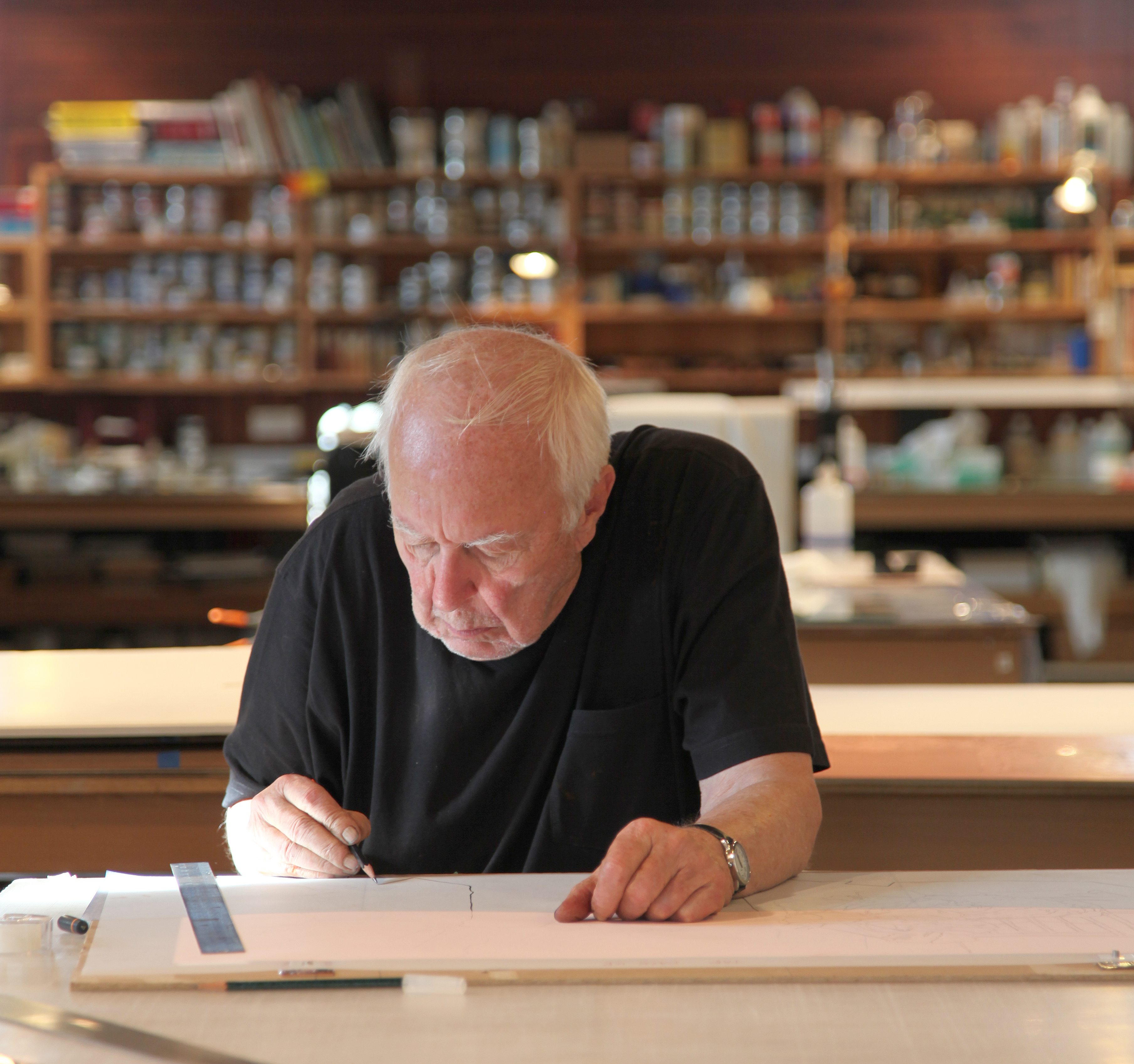 A Filadelfia llegó en coche desde Sharon, la localidad de Connecticut en la que vive desde los años ochenta, recluido en una imponente mansión de piedra estilo Nueva Inglaterra, en la finca donde también tiene su estudio. En la exposición, se detuvo en casi cada una de las obras. Durante la visita, organizada por el comisario argentino Carlos Basualdo, rechazó cualquier ayuda más allá de su bastón; tiene 91 años, pero también mucho orgullo. Después de comer, emprendió el viaje de casi cuatro horas de vuelta a casa acompañado por sus asistentes.