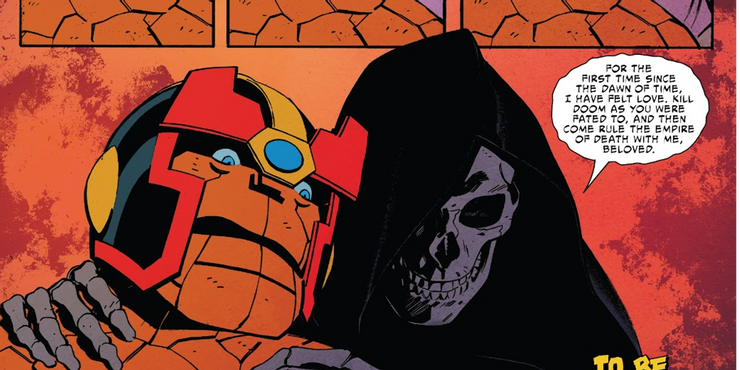 La historia de amor de Thanos con la Muerte es larga y complicada, pero esencialmente, ella lo ha estado manipulando desde que era un niño en Titán. Ver que él era mitad Eterno, mitad Desviado la fascinó, y decidió que él sería fundamental en sus planes. Ella lo empujó a matar por primera vez, lo que finalmente condujo a los eventos de Guantelete infinito, donde tiene lugar el momento icónico de Thanos de acabar con la mitad de toda la vida. Todo se hizo para ganar el amor de la Muerte, pero Thanos nunca se dio cuenta de que nunca estuvo destinado a ser. Ahora, Death tiene un nuevo interés amoroso, uno que seguramente pondrá celoso a Thanos.