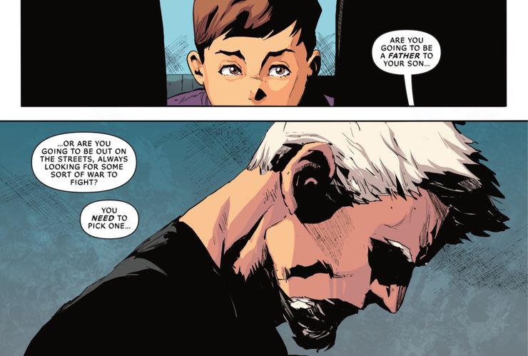 Sin embargo, resulta que Slade podría haber elegido un camino diferente. Como se ve en el nuevo muerte golpe inc. #10 que contiene el primer capítulo de su Año uno, Slade lucha por aclimatarse a la vida doméstica con su esposa e hijo después de que el gobierno experimentara con él en secreto, mejorando sus habilidades y dándole un factor de curación impresionante (también fue el único sujeto exitoso). Si bien había comenzado a salir en secreto como justiciero, el gobierno eventualmente se acerca a él con un contrato para ayudarlos a encubrir su programa ilegal. Inquieto y necesitado de un propósito, Slade eligió ser un mercenario sobre la paternidad, una decisión que eventualmente lo convertiría en un villano completo en lugar de convertirse potencialmente en un héroe del que su familia podría estar orgullosa.