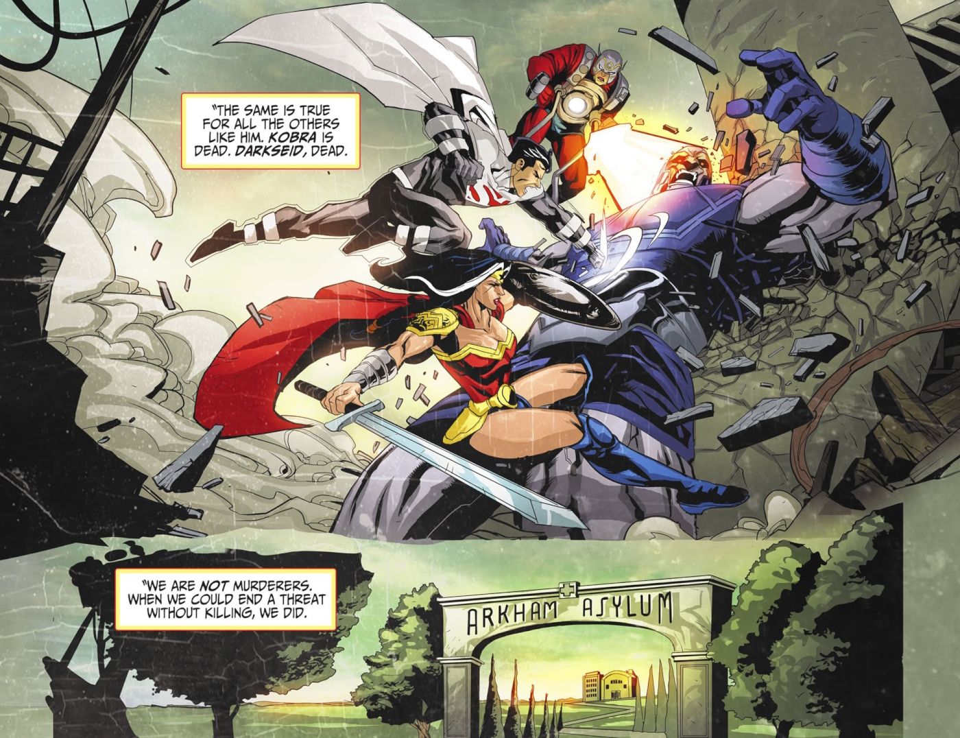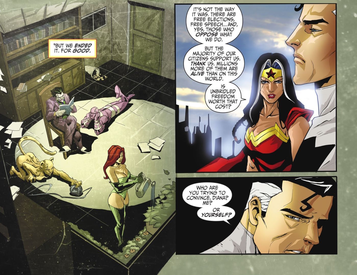 “/> Esto los incluye pelear y matar tanto a Brainiac como a Darkseid, pero no querían emplear fuerza letal contra todos los villanos. Se revela que Varios villanos, como Cheetah, Poison Ivy e incluso el Joker, han sido lobotomizados.
