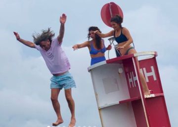 Paul Hill, en el mar, rodeado de la familia Kennedy tras el salto en honor a su hija. Instagram