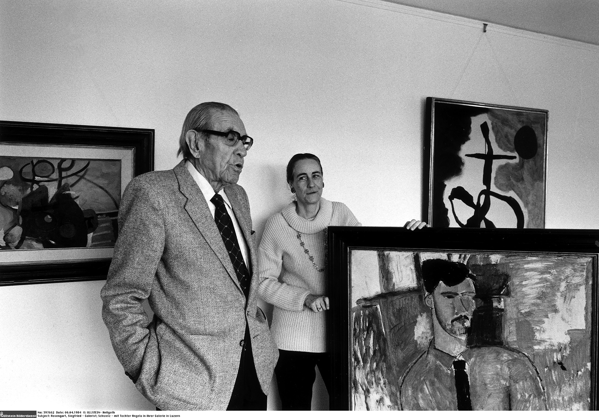 Cuando Angela cumplió 17 años, sus padres quisieron regalarle su primer vestido largo de noche. Ella, sincera, dijo que hubiera preferido el dibujo de Paul Klee Ein Tier geht spazieren (un animal va de paseo). Con una sonrisa, el padre se declaró favorable al cambio y ella salió disparada a por su adorado regalo. Meses más tarde, padre e hija se hicieron íntimos de Picasso en París. No solo dan fe de ello las obras compradas sin intermediarios, también las numerosas fotografías de David Douglas Duncan. A sus 89 años, la señora Rosengart conserva el espíritu de la niña que corría feliz a la galería, la costumbre de visitar su museo a diario y buena memoria. Sobre el cuadro Retrato de un pintor después de El Greco, de 1950, cuenta que un día se presentó un marchante de Zúrich con intención de adquirirlo. El padre se negaba a venderlo, pero el hombre insistía. Siegfried optó por decirle que era el cuadro favorito de su hija y que se lo pensaba regalar para su boda. Pasaban los años y Angela no se casaba, por lo que el hombre volvía una y otra vez a la carga. Cuando le contaron la historia a Picasso, este vio al vuelo la solución, se encogió de hombros y dijo: “¿Y por qué no se ha casado con Angela?”.