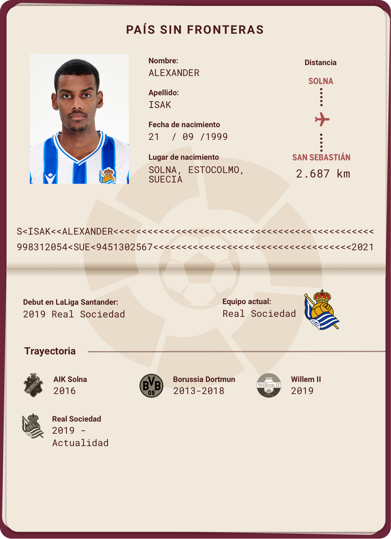 En su lugar natal, Solna, una ciudad de 80.000 habitantes al norte de Estocolmo, Isak jugó en el fútbol base del AIK desde pequeño. Debutó en el primer equipo a los 16 años. A los 17, se convirtió en el jugador más joven en jugar con la selección sueca. Según cuenta en EL PAÍS Jon Rivas, “a Isak le gustan el hip-hop y el rap; también Juego de Tronos y la NBA”. Desde su primer día en la Real Sociedad, a la que llegó en 2019 tras pasar por el Borussia Dortmund, está aprendiendo a hablar en español.