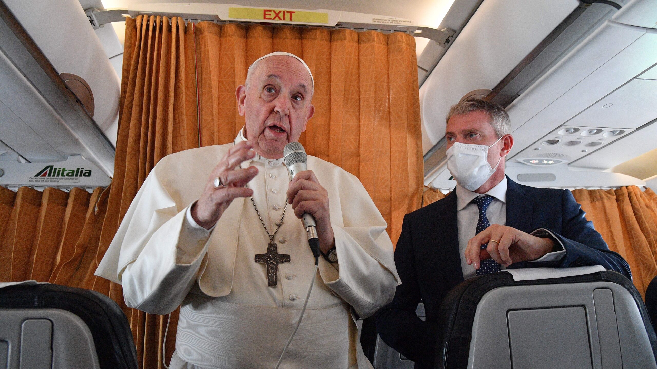 “Incluso en el Colegio Cardenalicio, hay algunos negacionistas”, dijo Francisco en el avión papal camino a Roma desde Eslovaquia.