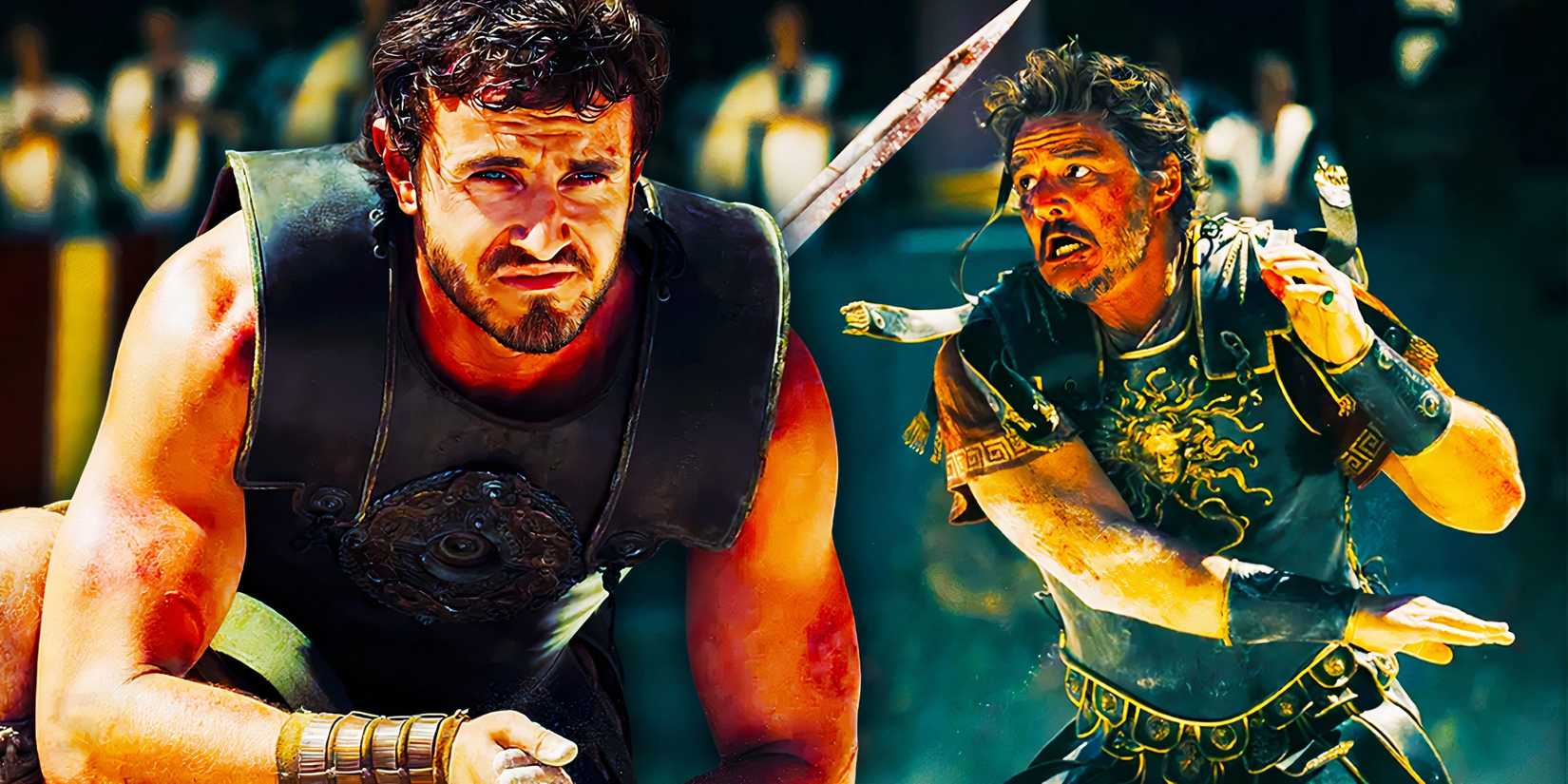 Se centra en Lucius, un antiguo heredero del Imperio Romano convertido en gladiador que tiene conexiones con los personajes de la película original. - El personaje de Denzel Washington, Macrinus, sirve como reemplazo de Proximo al patrocinar gladiadores.