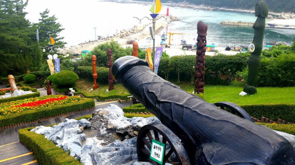 Este enclave, ubicado en la ciudad costera de Sinnam, provincia de Gangwon, alberga penes de todas las formas, tamaños y colores. Incluso hay un pene con forma de cañón y, por supuesto, con un mensaje para turistas que les advierte de que no se monten sobre él.