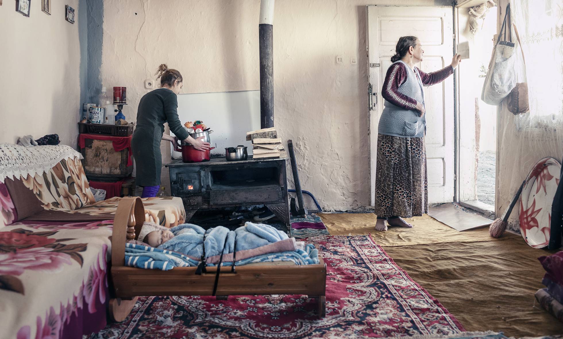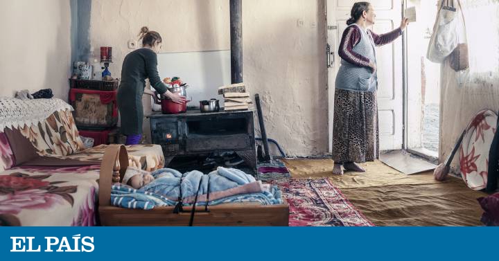 Lufti Shaziu, de 64 años, en el sofá del cuarto de estar de su casa en el pueblo de Studenichani, en las afueras de Skopje, donde nació y creció. Shaziu trabajó 36 años en la fábrica de OHIS de la capital. La empresa, de mayoría estatal, llegó a tener cinco fábricas de productos de limpieza, insecticidas, pesticidas y cosméticos que se vendían en todos los Balcanes.