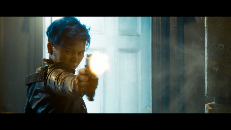 Ahora, gracias a una nueva serie de imágenes teaser, el primer vistazo a La matriz 4, incluido el misterioso personaje de Henwick, ha sido revelado. Las fotos, tomadas por el oficial Matrix Resurrecciones sitio teaser y compartido con Imgur por el usuario p0rtman87, revelan a Henwick con una de las chaquetas de cuero negro exclusivas de la franquicia y luciendo un fantástico corte de pelo azul. La muestran escondida en una especie de paisaje cibernético, siendo perseguida por una figura en la sombra, dando vueltas por un pasillo y disparando a un enemigo invisible fuera de la pantalla. Todavía no está claro cuál es exactamente el papel del personaje, o incluso de qué lado está, pero parece que es más que capaz de manejarse sola.