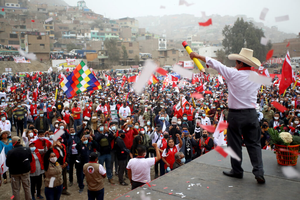 Una tarde de finales de mayo, en un barrio de casas destartaladas y calles polvorientas del norte de Lima, se oía una voz a través de unos altavoces: “En costa, sierra y selva, Castillo presidente”. Los vecinos y los perros callejeros, encandilados por la musiquilla, se fueron congregando en una gran explanada. De repente, apareció un hombre vestido de agricultor, con un sombrero de palma y los brazos extendidos. Su presencia electrificó a los presentes.